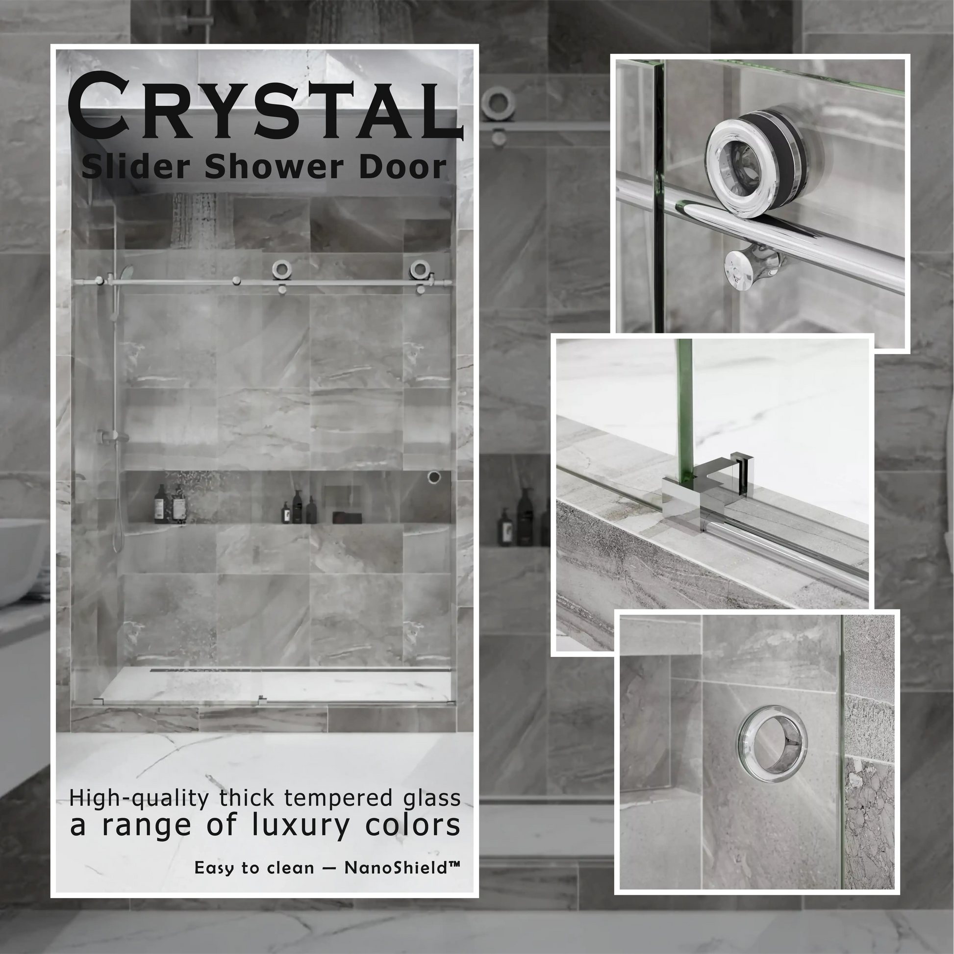 Upgrade your bathroom with the Crystal Polished Stainless sliding shower door and professional installation in New Jersey. Includes 3/8" clear tempered glass, polished stainless hardware, smooth-glide rollers, delivery, expert install, and a free 6-month service. Available sizes from 44-48 in. to 56–60 in. W × 78 or 62 in. H.