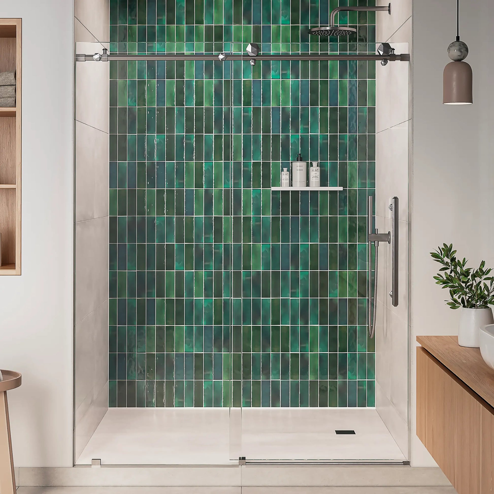 The Diamond Brushed Stainless Sliding Shower Door brings modern luxury to any bathroom. Built with 3/8 in. clear tempered glass and premium brushed stainless hardware, it delivers durability, clarity, and a sleek, minimalist look. NanoShield™ coating helps keep the glass clean, while HydroLock™ edge sealing reduces water escape. Smooth and silent rollers ensure effortless gliding, and SmartWidth™ + SmartLevel™ adjustments support a precise fit. Reversible design and certified safety glass make this door a stylish, reliable choice for a contemporary shower upgrade.