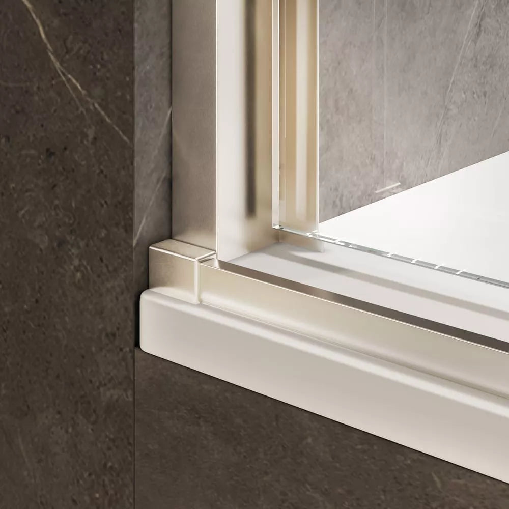 Upgrade your bathroom with the Strada Light Brushed Nickel sliding shower door and professional installation in New Jersey. Includes 1/4" clear tempered glass, brushed nickel hardware, smooth-glide rollers, delivery, expert install, and a free 6-month service. Available sizes from 44-48 in. to 56–60 in. W × 70 in, 76 in. or 60 H.