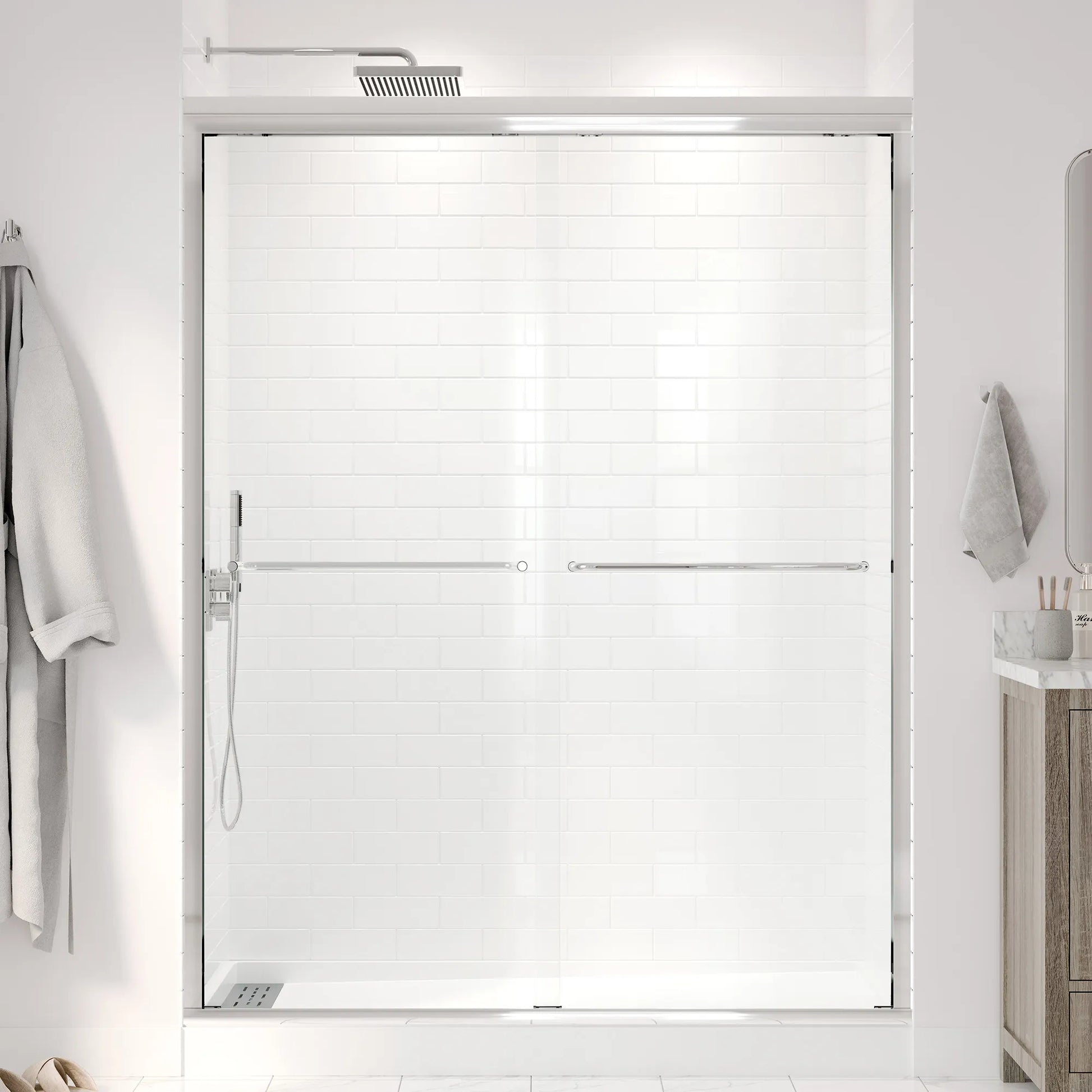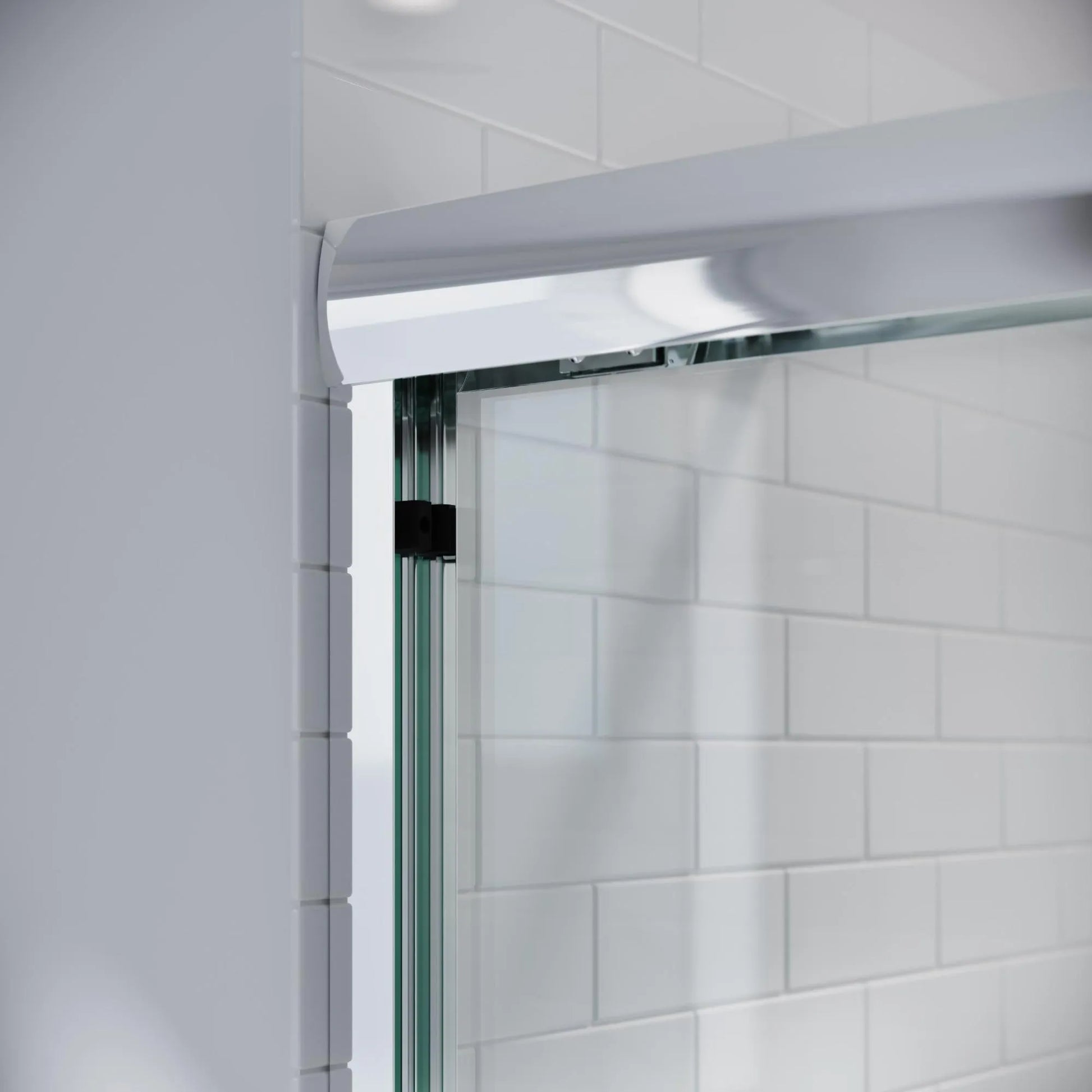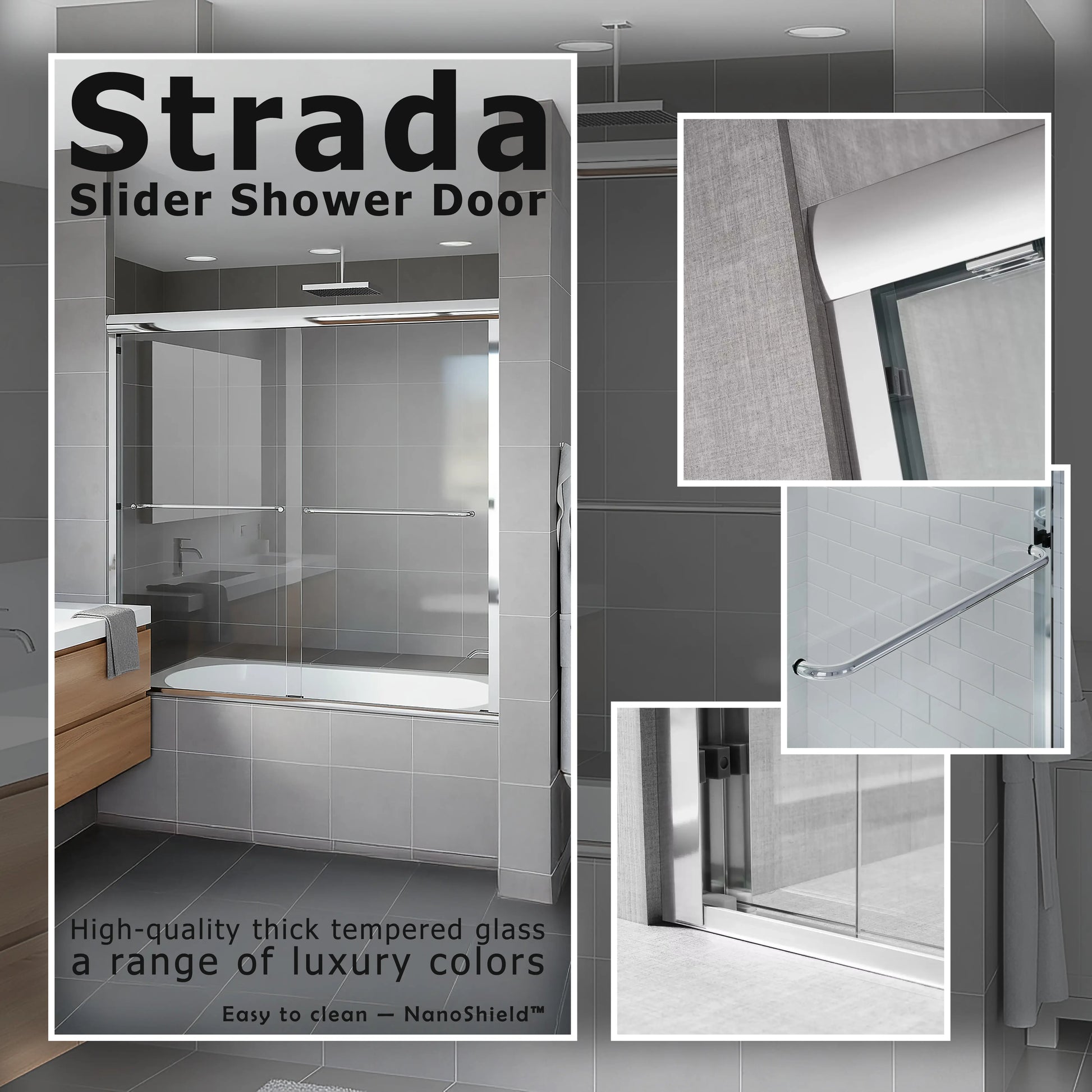 Upgrade your bathroom with the Strada Polished Chrome Bypass sliding shower door and professional installation in New Jersey. Includes 3/8" clear tempered glass, polished chrome hardware, smooth-glide rollers, delivery, expert install, and a free 6-month service. Available sizes from 44-48 in. to 56–60 in. W × 76 in. or 62 H.