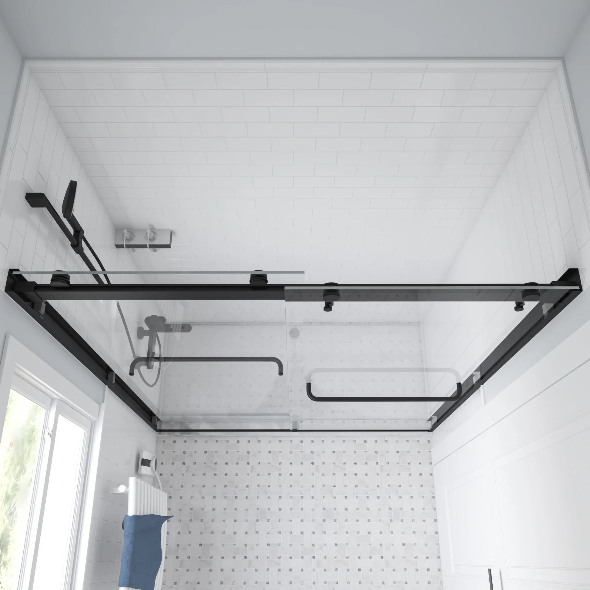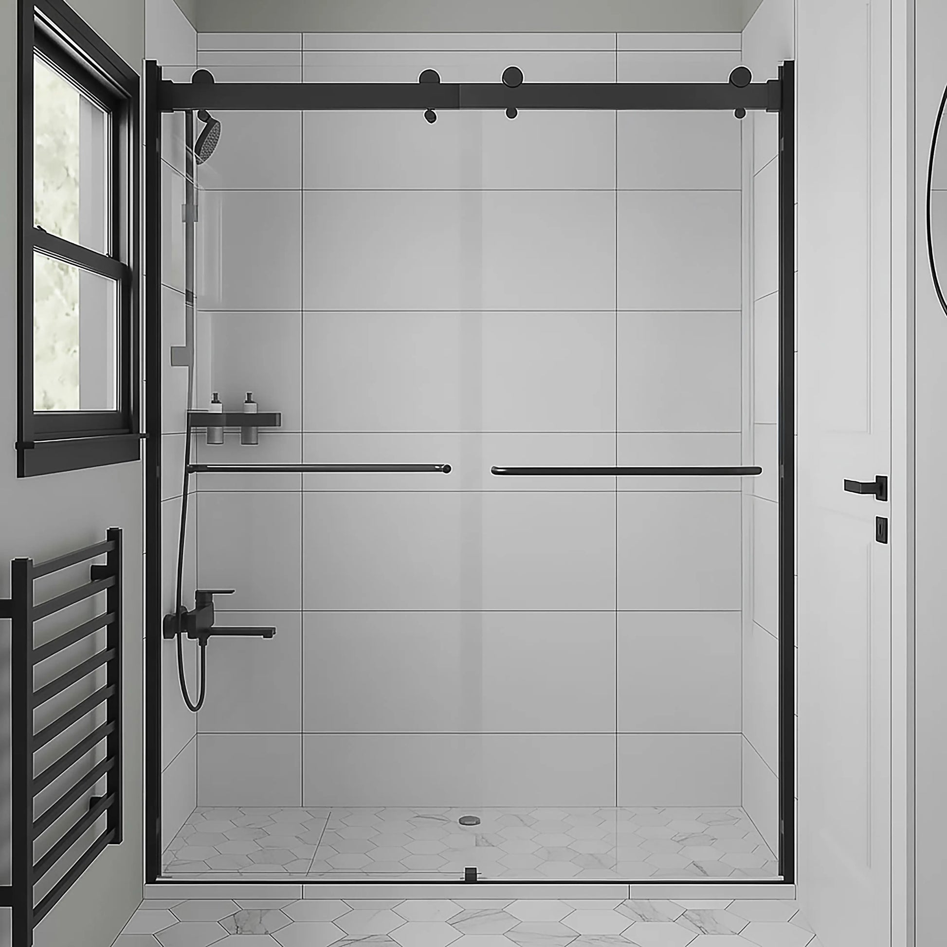 The Verona Light Matte Black Sliding Shower Door brings modern luxury to any bathroom. Built with 1/4 in. clear tempered glass and premium matte black hardware, it delivers durability, clarity, and a sleek, minimalist look. NanoShield™ coating helps keep the glass clean, while HydroLock™ edge sealing reduces water escape. Smooth and silent rollers ensure effortless gliding, and SmartWidth™ + SmartLevel™ adjustments support a precise fit. Reversible design and certified safety glass make this door a stylish, reliable choice for a contemporary shower upgrade.